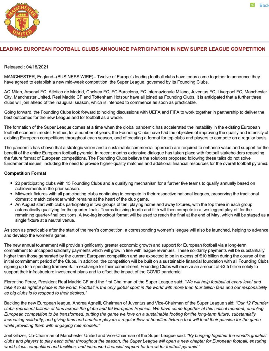 Utddistrict On Twitter Official Mufc Statement On The European Super League