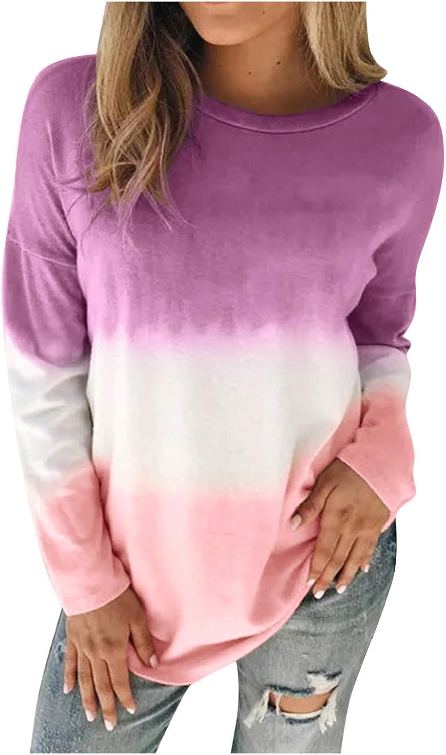 Amazon Com Actloe Women Tie Dye Sweatshirt Casual Top Long Sleeve Ombre Printed Shirts Color Block Pullovers Clothing Shoes Jewelry