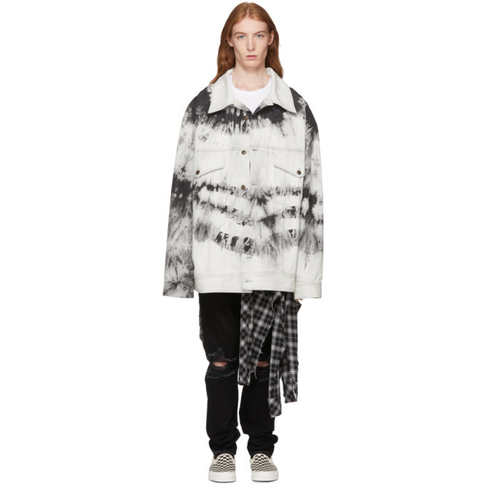 Balenciaga Black And White Bleached Tie Dye Denim Jacket
